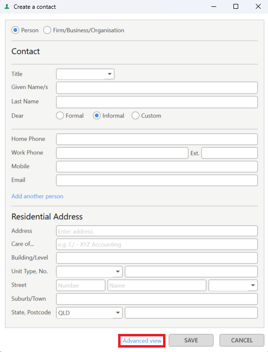 2. Select whether the contact is for a Person or a Firm/Business/Organisation.