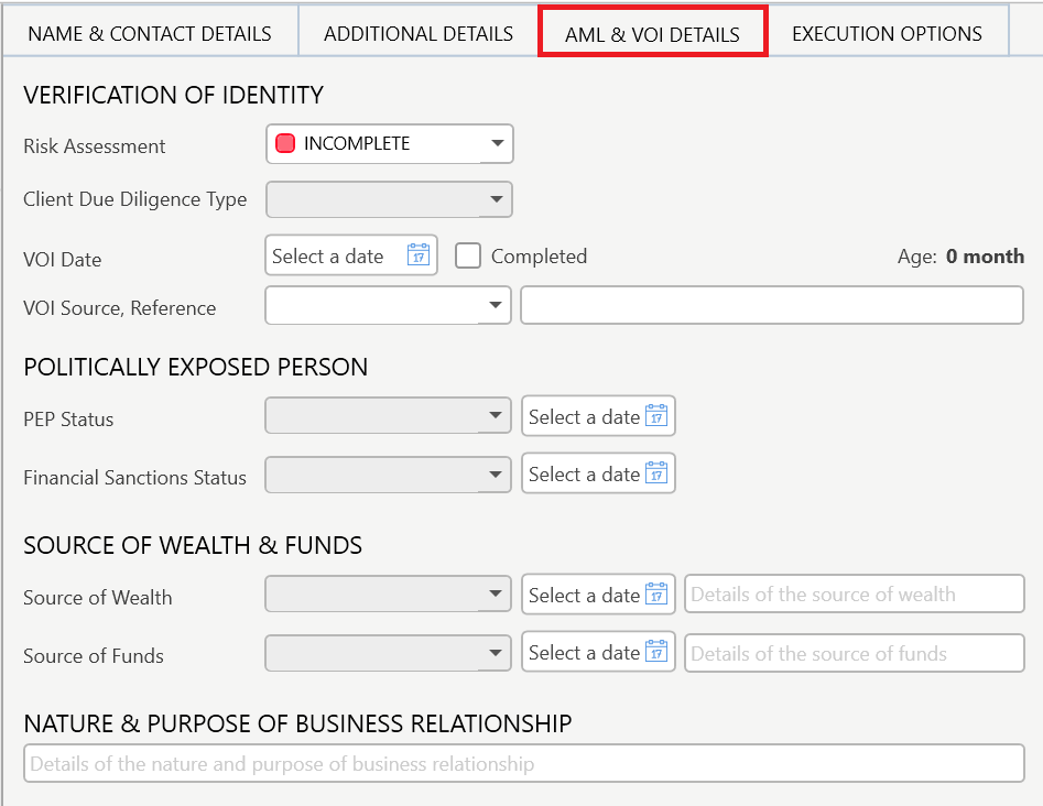 The AML & VOI Details tab is where you enter information regarding the contact's AML status. This is a requirement as per AML/CTF Tranche 2 regulations coming into effect from July 1 2026.